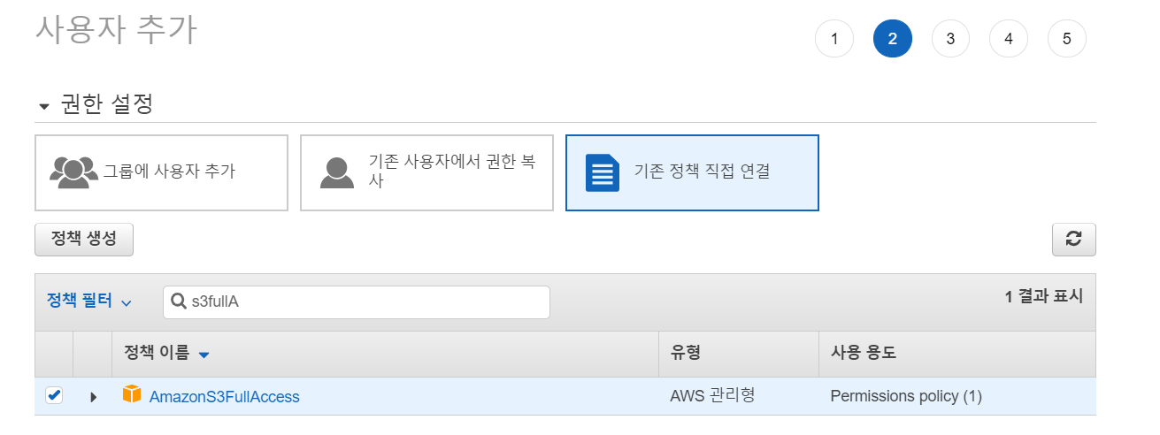 - 사용자 만들기 ( Access key 와 Secret key 를 얻을 수 있음 )